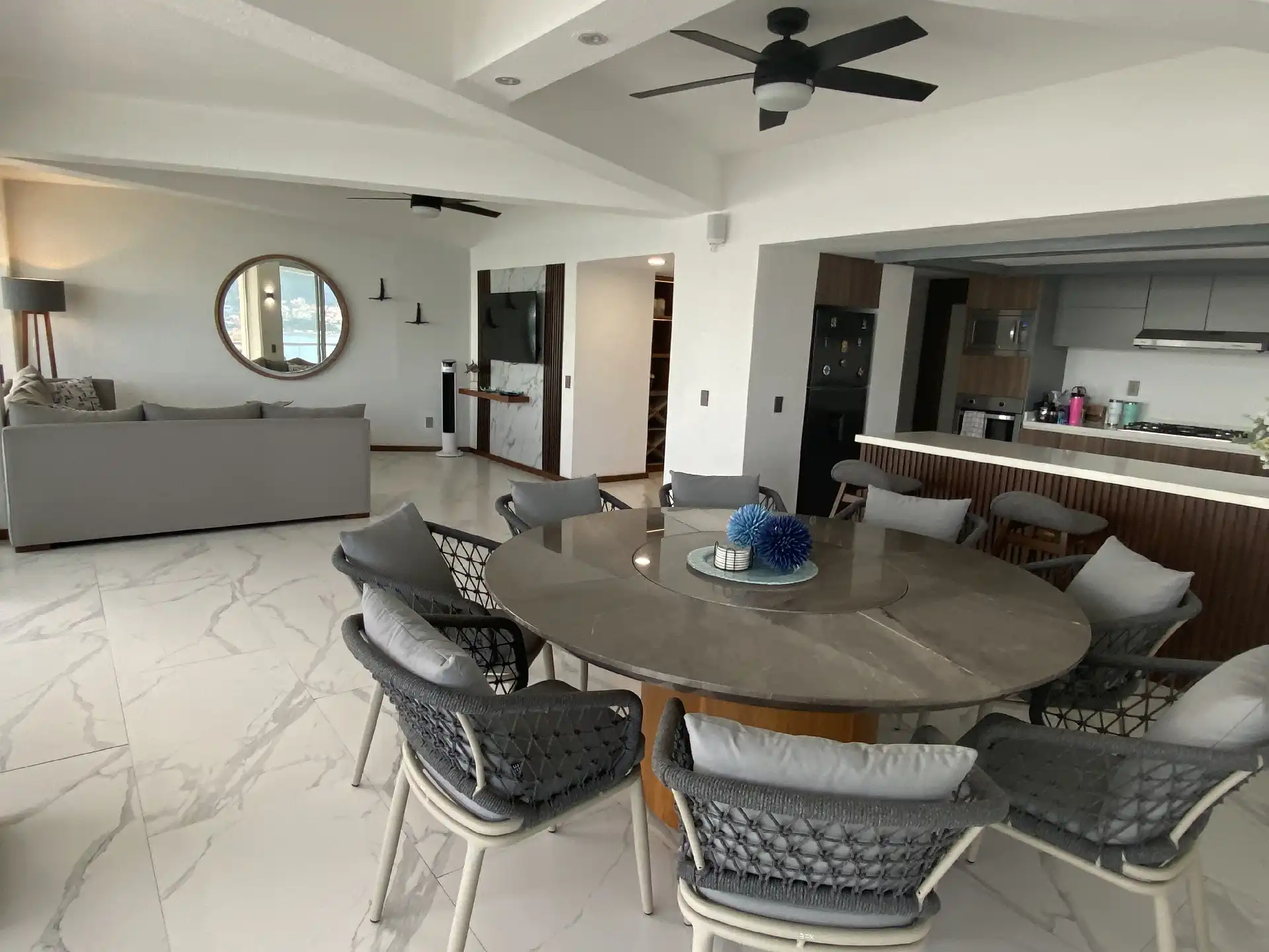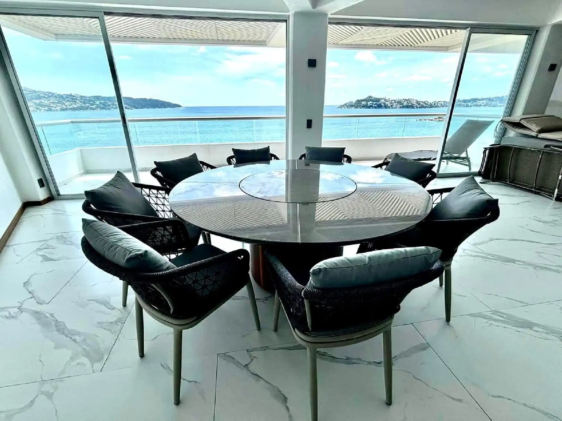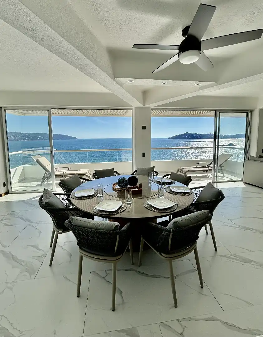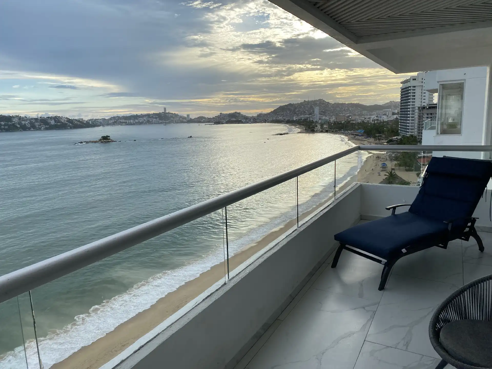 Departamento recién remodelado y amueblado listo para disfrutarse con excelente vista a la bahía !! torre de solo 12 Deptos uno x piso este esta en el piso 11 , tiene 200 m2 con 3 rec , principal king size con vestidor y baño , 2a rec 2 camas queen y la 3a una cama matrimonial y una individual y comparten baño completo estás 2 ,cantina, sala comedor con medio baño,cocina integral, tiene cto de lavado y baño completo en área de lavado Esta en medio de la bahía con salida directo a la playa