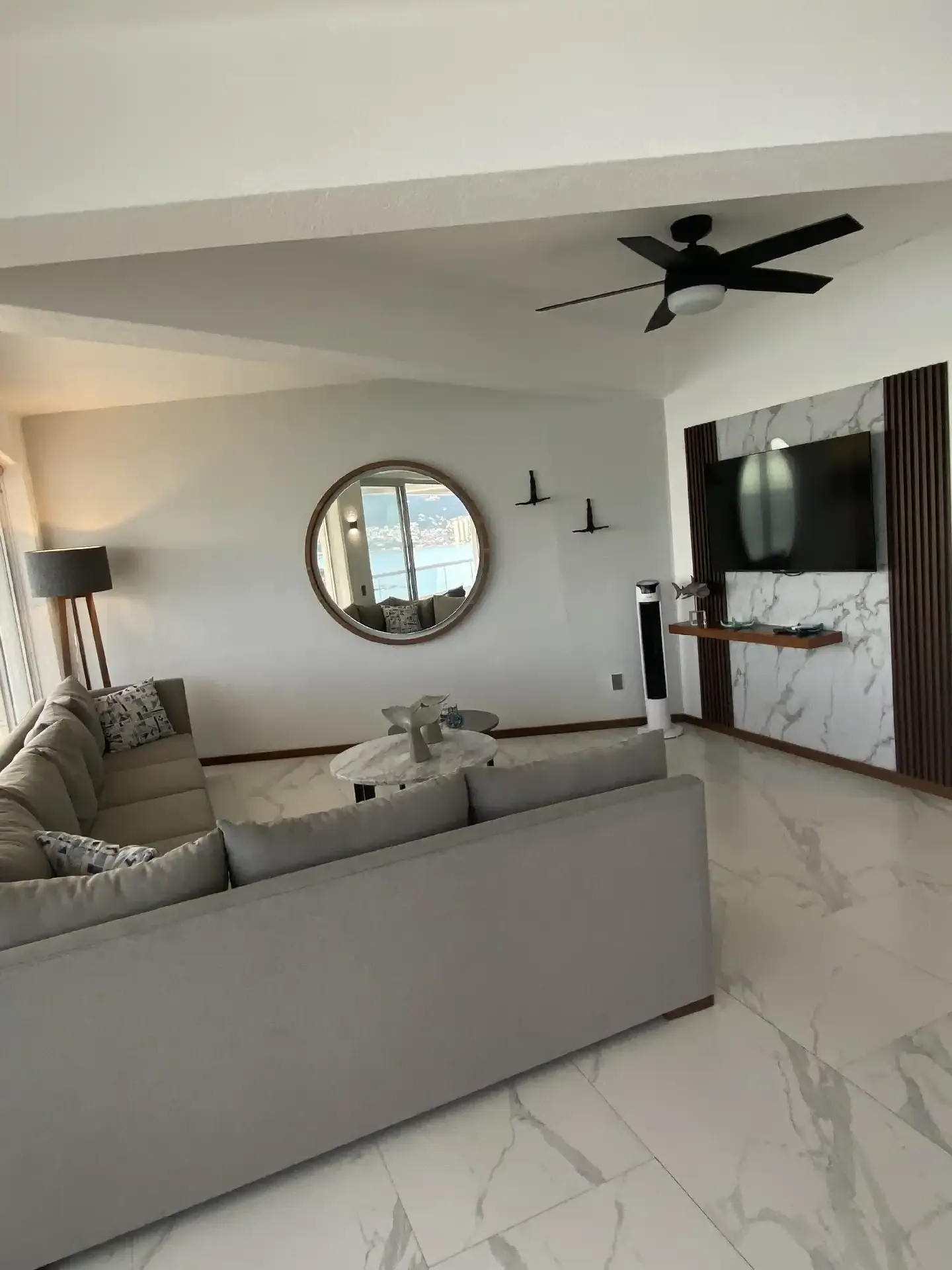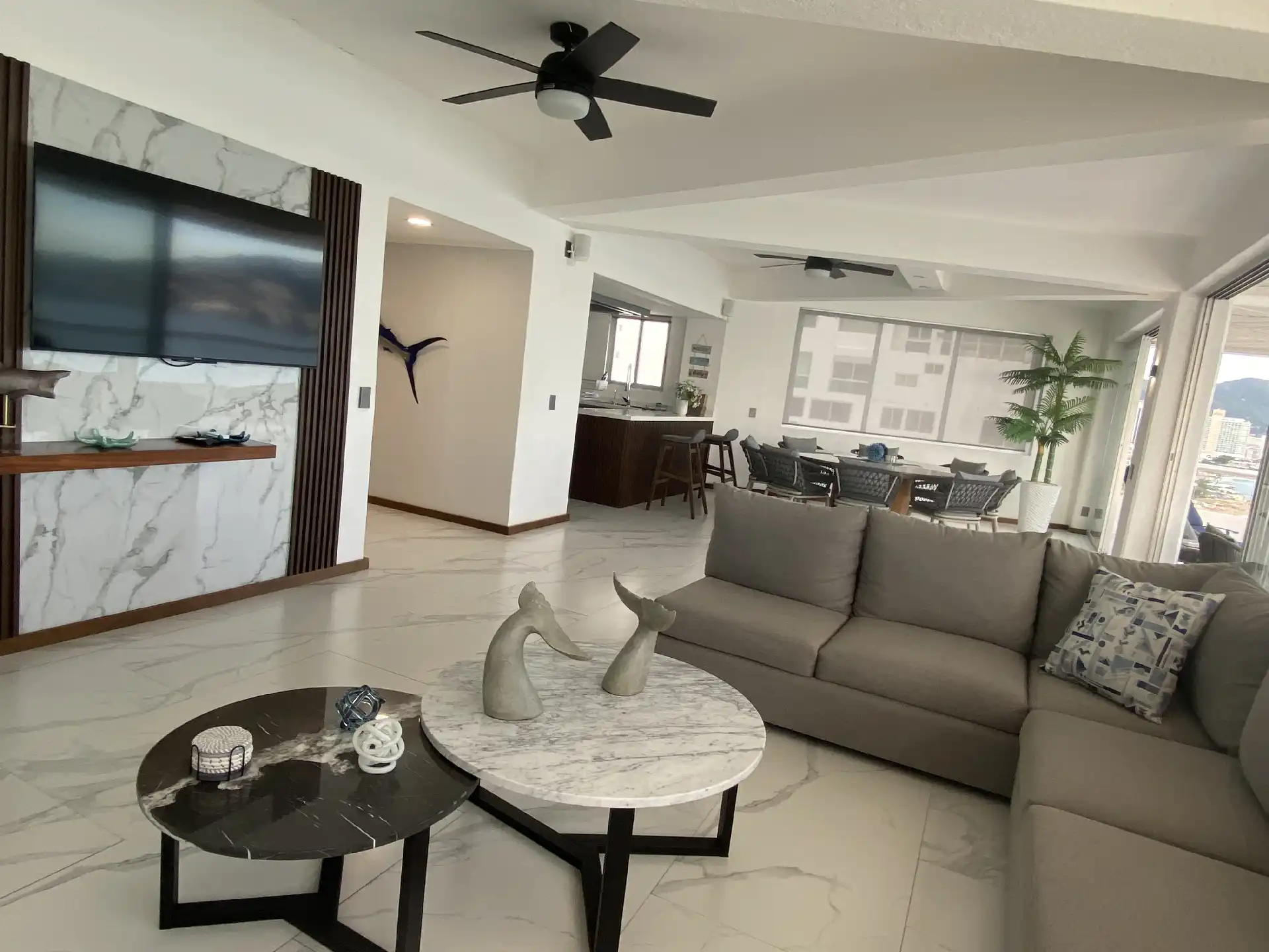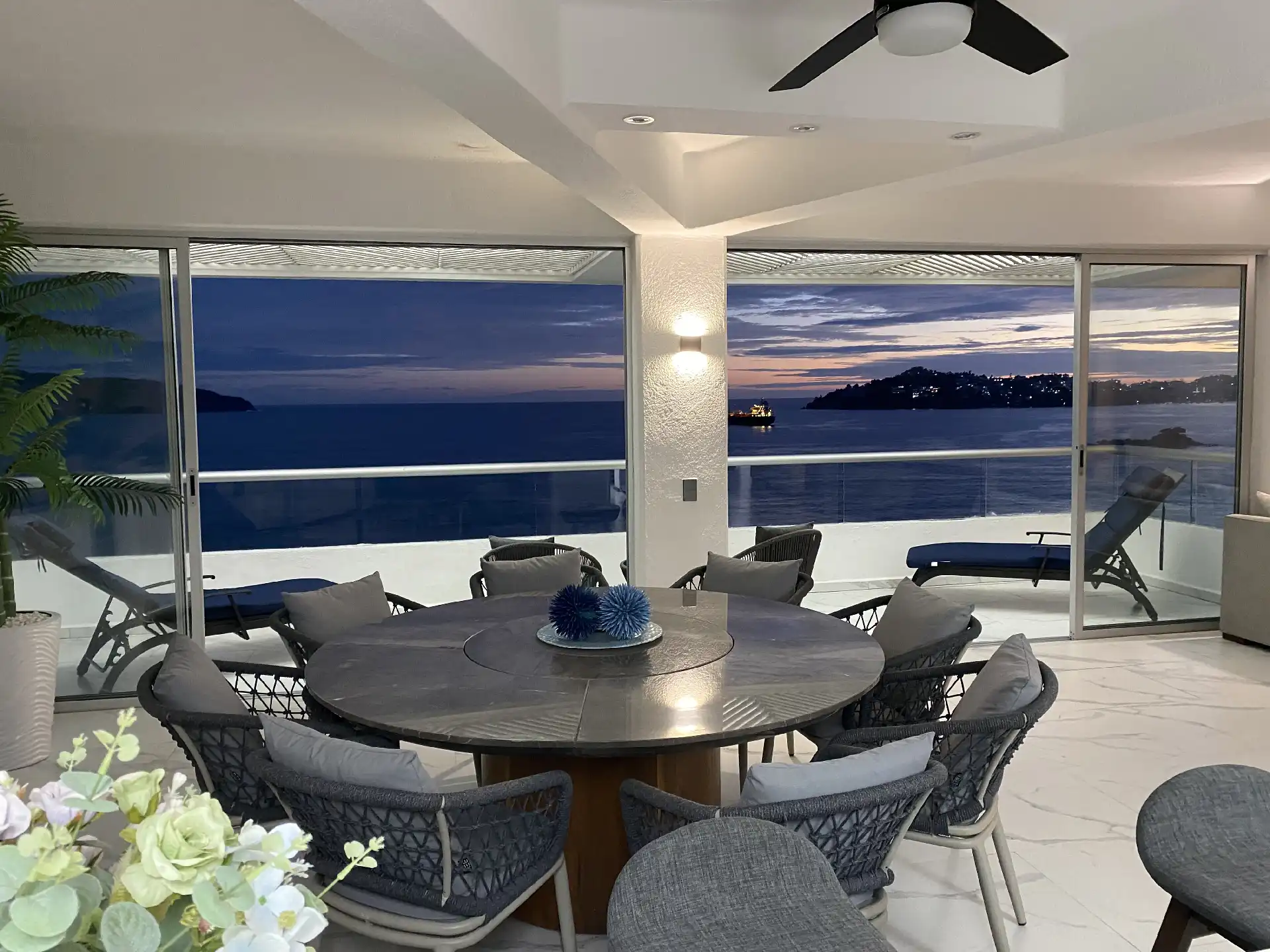 Departamento recién remodelado y amueblado listo para disfrutarse con excelente vista a la bahía !! torre de solo 12 Deptos uno x piso este esta en el piso 11 , tiene 200 m2 con 3 rec , principal king size con vestidor y baño , 2a rec 2 camas queen y la 3a una cama matrimonial y una individual y comparten baño completo estás 2 ,cantina, sala comedor con medio baño,cocina integral, tiene cto de lavado y baño completo en área de lavado Esta en medio de la bahía con salida directo a la playa